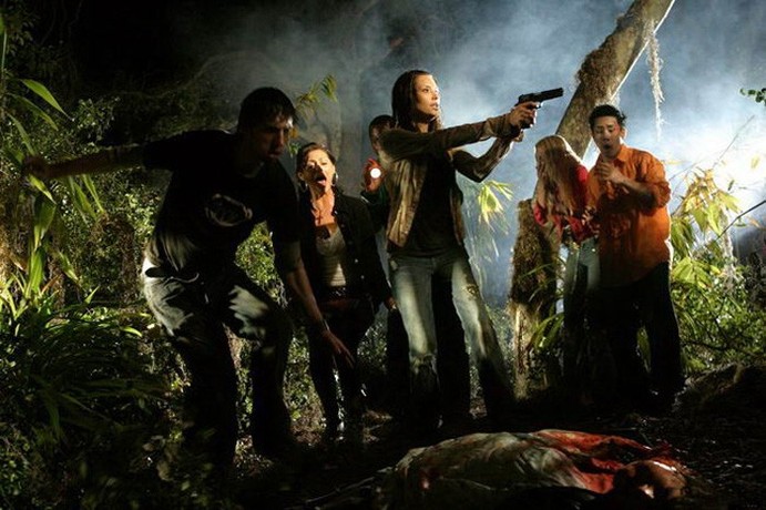 So when asked why he wants to bring so many hunters along, Tony Todd’s character replies, “Safety in numbers.” And yet, within minutes of arriving at the swamp, Todd tells everyone to split up. Yeah, it’s one of those movies, but the obligatory sex scene which results from this bad decision had me dying with laughter. It’s like something out of Eli Roth’s fake Thanksgiving trailer and, uh, the sound effects are… well, brilliant. This sex scene also provides one of the few dialogue jokes that work in the entire movie.
