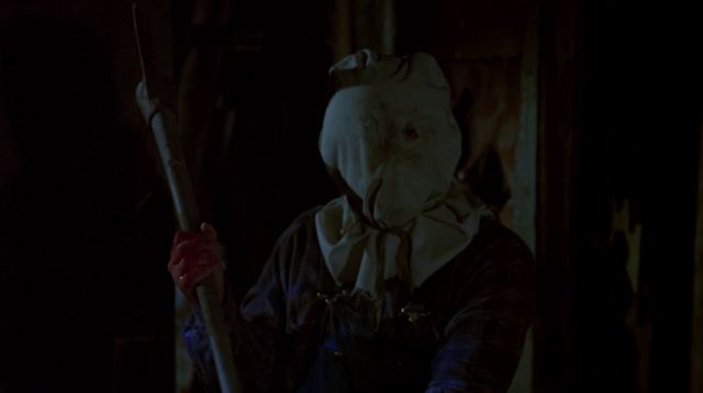 Now it’s time for Pillow Case Jason. Cunningham steps down as director and defers to Steve Miner, who made some good horror movies (House, Warlock) and some questionable ones (Lake Placid, Halloween H2O) in between shooting episodes of Wonder Years and, uh, Dawson’s Creek. He also made the Mel Gibson melodrama Forever Young, which is a bizarre career trajectory if you ask me.