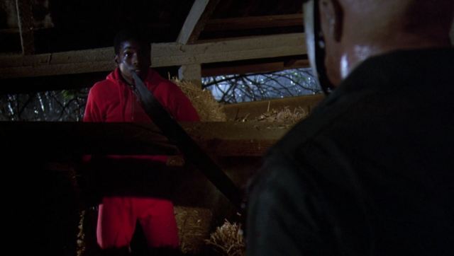 Whereas Jason is usually killed at the end of the movies, this time he’s killed right up front in explosive fashion. A morgue worker who autopsies the smithereens is somehow hypnotized by Jason’s disembodied heart and becomes a surrogate for Jason’s essence… or something. Now a black man, Jason wanders the countryside killing anyone who gets in his path.