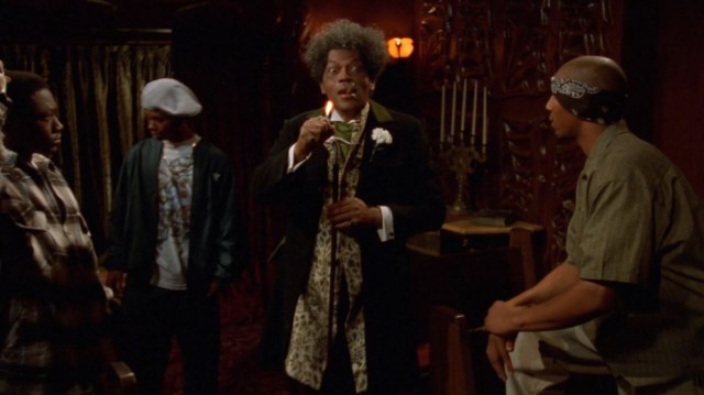 It only makes sense for a satirical franchise to satirize itself when it realizes the original film didn’t have a single black person in it. This is addressed immediately in the opening scene with Jada Pinkett and Omar Epps, playing a savvy young couple who are going to the premiere of Stab, the movie-within-a-movie based on the events of the original film. Never mind that the filmmakers kill them off immediately, it’s a step in the right direction… I guess.