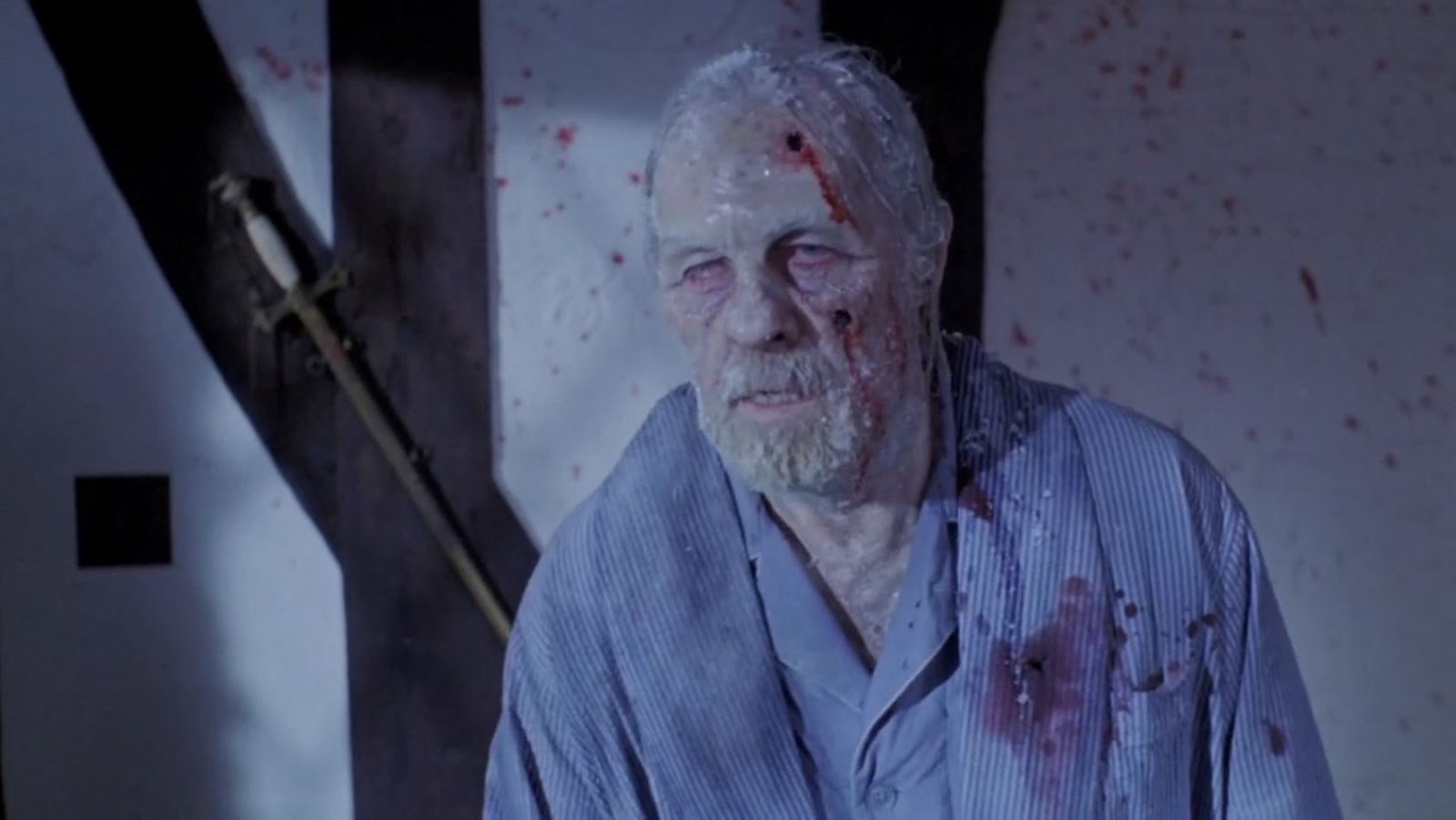 Romero’s segment comes first. It stars Creepshow’s Adrienne Barbeau and After Midnight’s Ramy as lovers despite the fact Barbeau’s wealthy husband (Bingo O’Malley) is on his deathbed. Zada, who happens to be a hypnotist, puts a spell on the man to make sure he doesn’t leave Barbeau out of the will. (I’m simplifying here because the boring legalese is much more complicated than it needs to be.) Unfortunately, Zada never issues the command to awaken the old man from his trance, so it keeps a part of him awake even in death.