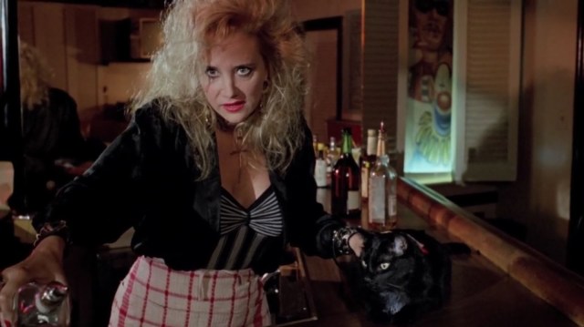 So Harvey Keitel plays a photographer who’s fascinated with grizzly deaths. Why John Amos’s detective character is so casual about letting a civilian poke around crime scenes doesn’t matter because, like I said, you’re immediately thrust into this bizarre world without any promise of realism. One day, while he’s developing pictures in his lab, Keitel discovers his wife has taken in a stray black cat. Keitel doesn’t like the cat because the cat doesn’t like him. Perhaps it intuits he’s a bad man?