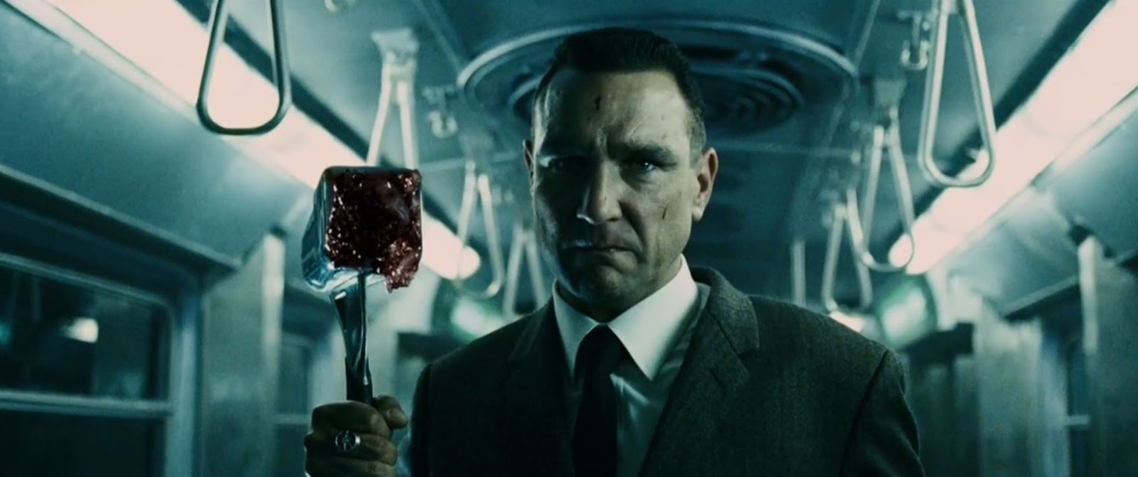 Later, Cooper learns what the audience already knows: the woman he photographed boarded a subway train and never got off. It turns out a mysterious man in a suit and tie (Vinnie Jones) butchers passengers on the train every night. What is he doing with the bodies? Where is the train going? Who the hell is he? Those questions are kind of answered by the end, but the answers feel more like excuses than reasons—excuses for showing a bunch of mayhem without substance.