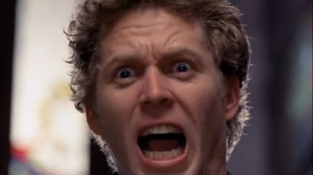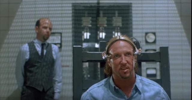 Later, when James is fried in the electric chair, he bursts into flames, rips himself out of the chair, and stomps towards Henriksen. The scene is just as wonderfully mental as it is silly, but nothing after it even competes. The biggest disappointment: they didn’t put a Cheers cast member in this one. Maybe when Cunningham goes through his George Lucas phase, he can digitally add Woody to the re-release.