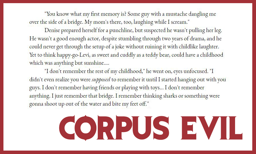 The first part of Corpus Evil is the massacre, so to say. The rest of the book explores what happens next.
