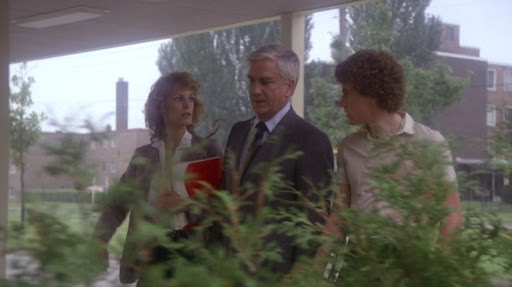 Jamie Lee Curtis, who looks a little too old to be a high school student, is the sister of the victim. Her father is Leslie Nielsen, who isn’t nearly as fun as he was in Creepshow, and Sledge Hammer’s Anne-Marie Martin plays Curtis’s hot, Corvette-driving rival. The instigating moment of the film, mentioned in the paragraph above, happens in the first five minutes. Then nothing interesting whatsoever happens until the final act, at which point the masked killer will chase the characters through scenes that go on for far too long.