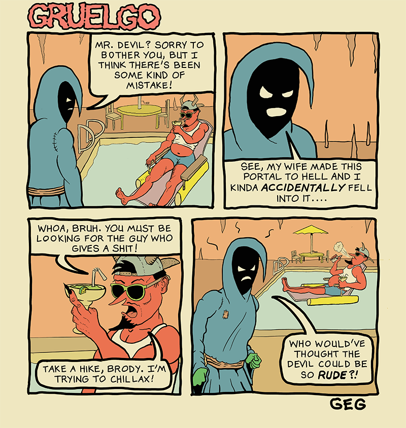 It’s the first appearance of Diabro! (Pretend it’s the 90s and buy three issues to bag and board!) He’s going to be an important part of Gruelgo comics going forward!