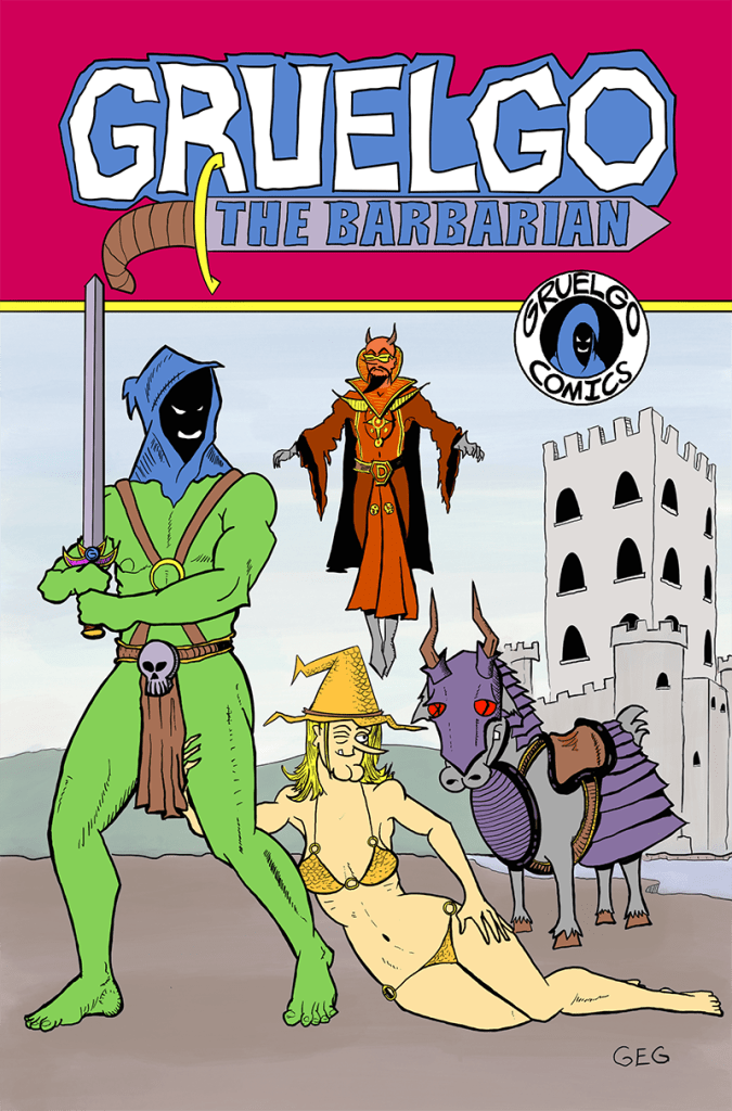 Here’s a pin-up that may or may not be included in the upcoming Gruelgo comic book—depends on how many pages I need to fill when all is said and done! It ain’t cheap printing physical copies, so if the story runs longer than expected (and it looks like it might at this point) I won’t have much room for filler! Seriously, though, I spent a lot of time writing the Gruelgo comic book and it’s going to be of a much higher quality than these ol’ peasant strips, ye hear? That’s why the damned thing is taking so long! Optimistically, it’ll be done in March. Realistically, it’ll be done sometime before the heat death of the universe.