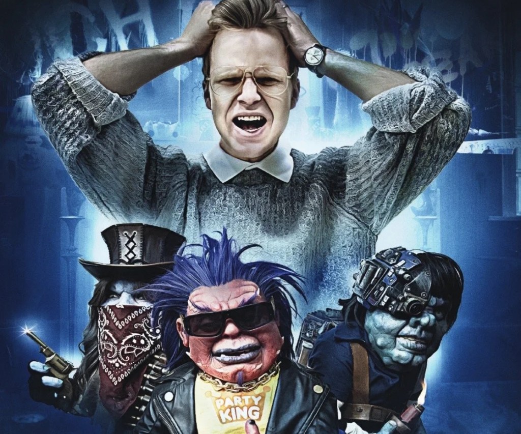 Conor, frustrated by the fact that even his boss thinks he’s a hopeless square, decides to call a party hotline as advertised on TV. Perhaps it’s more of a Canadian thing, but I ate, slept, and breathed late night television in the states and I absolutely do not remember any such advertisements for party lines that didn’t promise scantily clad women would call you, but I digress. Upon waking up the following morning, Conor discovers he blacked out while partying hard the night before. His trashed home is now inhabited by three prankster creatures of the Ghoulies variety who refuse to leave until Conor learns to lighten up permanently.