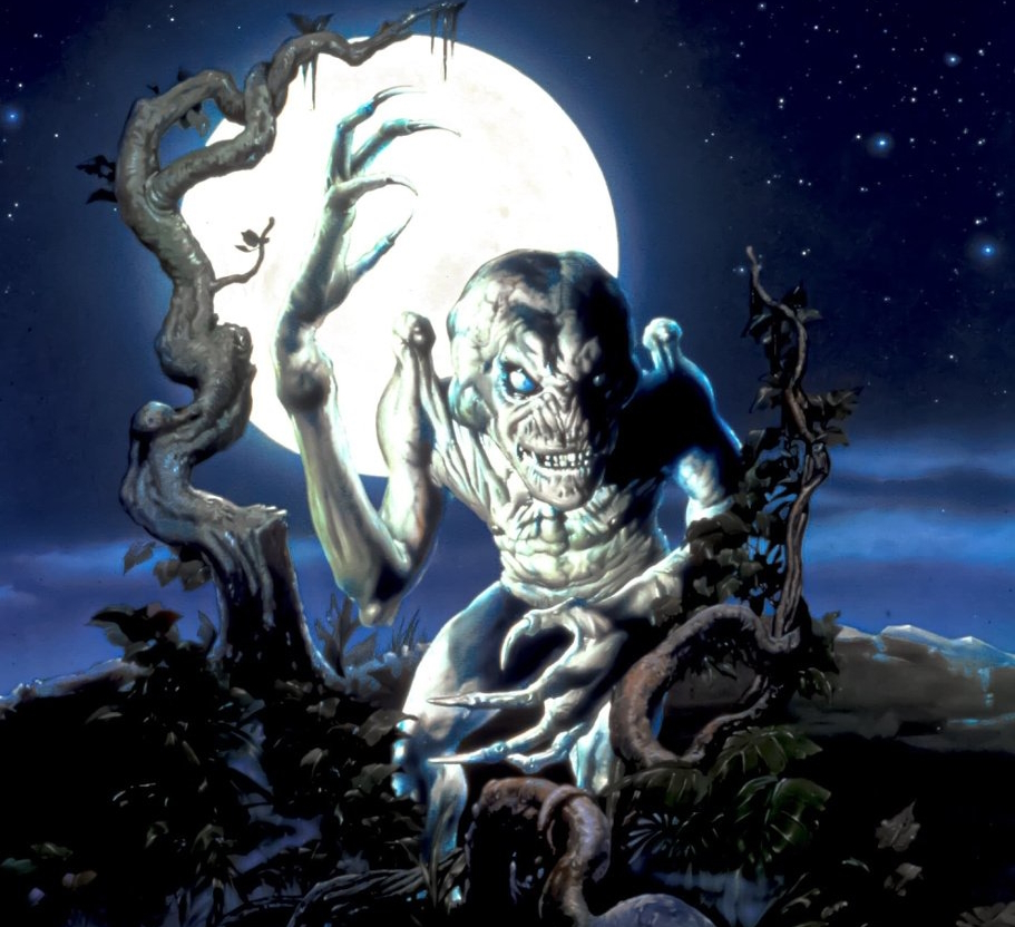 Pumpkinhead opens in a nondescript farm town in the 1950s. Hillbilly Clayton is being chased through the cornfields by something supernatural. He races to a cabin and pleads with a fellow farmer to let him in. The farmer shouts through the locked door, “I can’t risk my family for you, Clayton. Now get away before I have to shoot you!” When the monster attacks, we catch fleeting glimpses of a creature design that should have become a lot more iconic than it ultimately did.