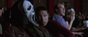 It only makes sense for a satirical franchise to satirize itself when it realizes the original film didn’t have a single black person in it. This is addressed immediately in the opening scene with Jada Pinkett and Omar Epps, playing a savvy young couple who are going to the premiere of Stab, the movie-within-a-movie based on the events of the original film. Never mind that the filmmakers kill them off immediately, it’s a step in the right direction… I guess.